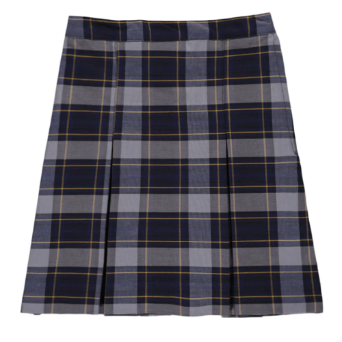 Pretty in plaid. This knee-length pleated skirt is a simple way to dress up any outfit. Wear it with a polo on school days, or pair it with a hoodie out of class. The smooth fabric helps those pleats stay crisp in the wash.